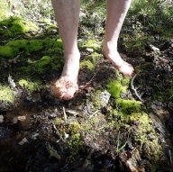 It’s just near the winter solstice and the earth is cold, it’s been an incredibly wet autumn and early winter and even though the land slopes towards the river there is a slick of water running through the grass. My bare heel touches the soil and due to the muddy nature of everything it sinks…