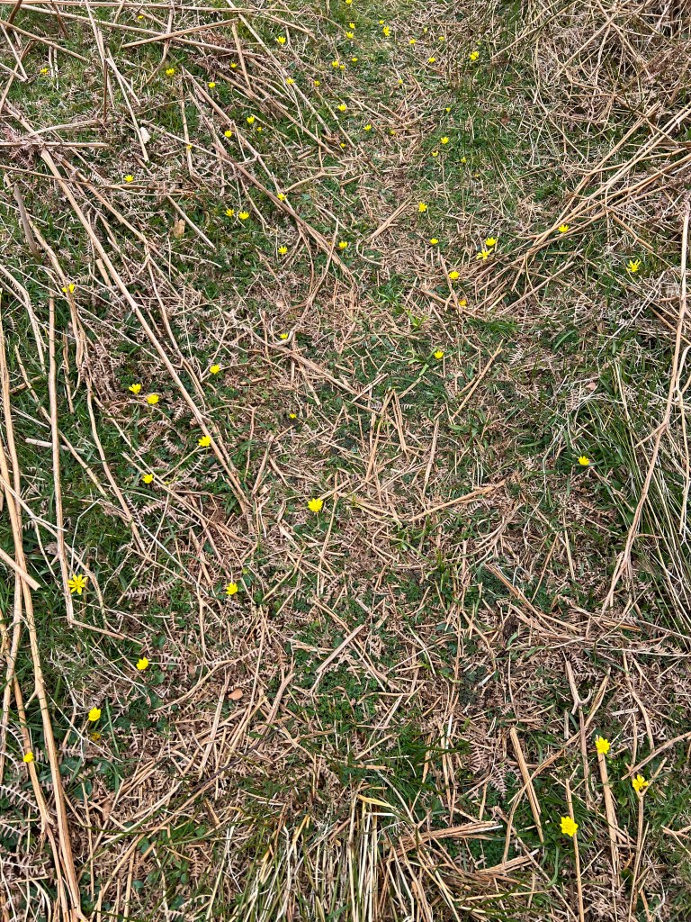 Whilst we have had the snowdrops and daffodils in bloom earlier this year. Just this morning whilst drying myself after the morning bathe I finally noticed that the land around me is starting to green in the wider sense, grass at last starting to grow and the first spears of the bluebell leaves pushing up through the soil.
